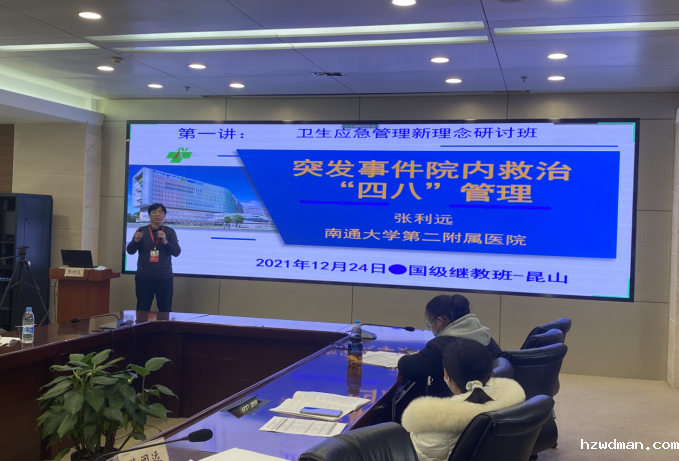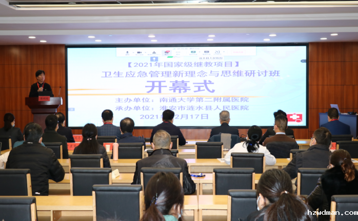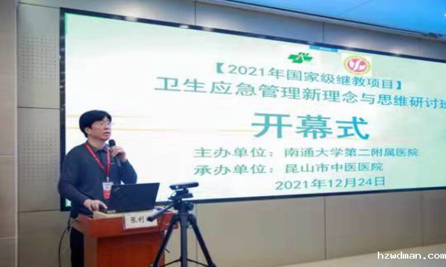 2021年国家级继续教育项目(项目编号:10-01-247)“卫生应急管理新概念和思维研讨班”,分别于2021年12月17-19日和24-26日在淮安涟水县和苏州昆山线上线下方式举办,3天研讨班22个专题分别有来自北京市卫健委、江苏省卫健委应急管理高级专家,江苏省医学会、北京协和医院、解放军总医院、东南大学、武汉大学、海南医学院、南昌大学、江苏大学、南通大学等17位专家担任教学,其中项目负责人张利远教授作了5个专题报告。涟水县人民医院党委左杨松书记、涟水县人民医院濮娟院长、昆山市中医院封以生院长以及涟水、昆山卫健委领导出席开班式讲话。